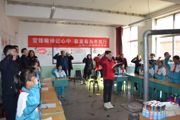 隨后,志愿者們來到了中莊寨村小學(xué),為孩子們講述了雷鋒的故事,孩子們聽得津津有味,更加深刻領(lǐng)會(huì)到了新時(shí)期學(xué)習(xí)雷鋒精神的重要性。集團(tuán)公司團(tuán)青志愿者和全校的14個(gè)孩子、老師們共唱《學(xué)習(xí)雷鋒好榜樣》等歌曲,并共同宣誓。在互動(dòng)游戲環(huán)節(jié)中,孩子們暢談了發(fā)生在自己身邊的好人好事。他們純真的笑臉、朗朗的讀書聲讓這個(gè)山村變得更加明亮而又充滿希望。我們也希望孩子們能時(shí)時(shí)刻刻在自己心中樹立起向雷鋒同志學(xué)習(xí)的理念,時(shí)時(shí)刻刻以雷鋒精神激勵(lì)著自己前進(jìn)。最后,集團(tuán)公司團(tuán)青志愿者們還為孩子們發(fā)放了《雷鋒日記》等書籍及文具用品。