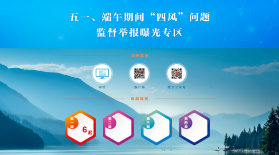 為持續(xù)推進(jìn)正風(fēng)肅紀(jì),營(yíng)造風(fēng)清氣正節(jié)日氛圍,中央紀(jì)委國(guó)家監(jiān)委網(wǎng)站推出“五一、端午期間‘四風(fēng)’問(wèn)題監(jiān)督舉報(bào)曝光專區(qū)”,加大典型案例通報(bào)曝光力度,持續(xù)釋放全面從嚴(yán)、一嚴(yán)到底的強(qiáng)烈信號(hào)。專區(qū)開(kāi)設(shè)“我要舉報(bào)”窗口,鏈接中央紀(jì)委國(guó)家監(jiān)委統(tǒng)一舉報(bào)平臺(tái),歡迎廣大網(wǎng)友通過(guò)網(wǎng)站、手機(jī)客戶端和微信公眾號(hào),對(duì)節(jié)日期間易發(fā)的違規(guī)吃喝、違規(guī)收送禮品禮金、違規(guī)使用公車、公款旅游、違規(guī)發(fā)放津貼補(bǔ)貼或福利等問(wèn)題進(jìn)行舉報(bào)。專區(qū)“每周通報(bào)”欄目從5月6日起,分4次集中對(duì)各地查處的“四風(fēng)”典型問(wèn)題點(diǎn)名道姓通報(bào)曝光,強(qiáng)化警示震懾,確保節(jié)日風(fēng)清氣正。