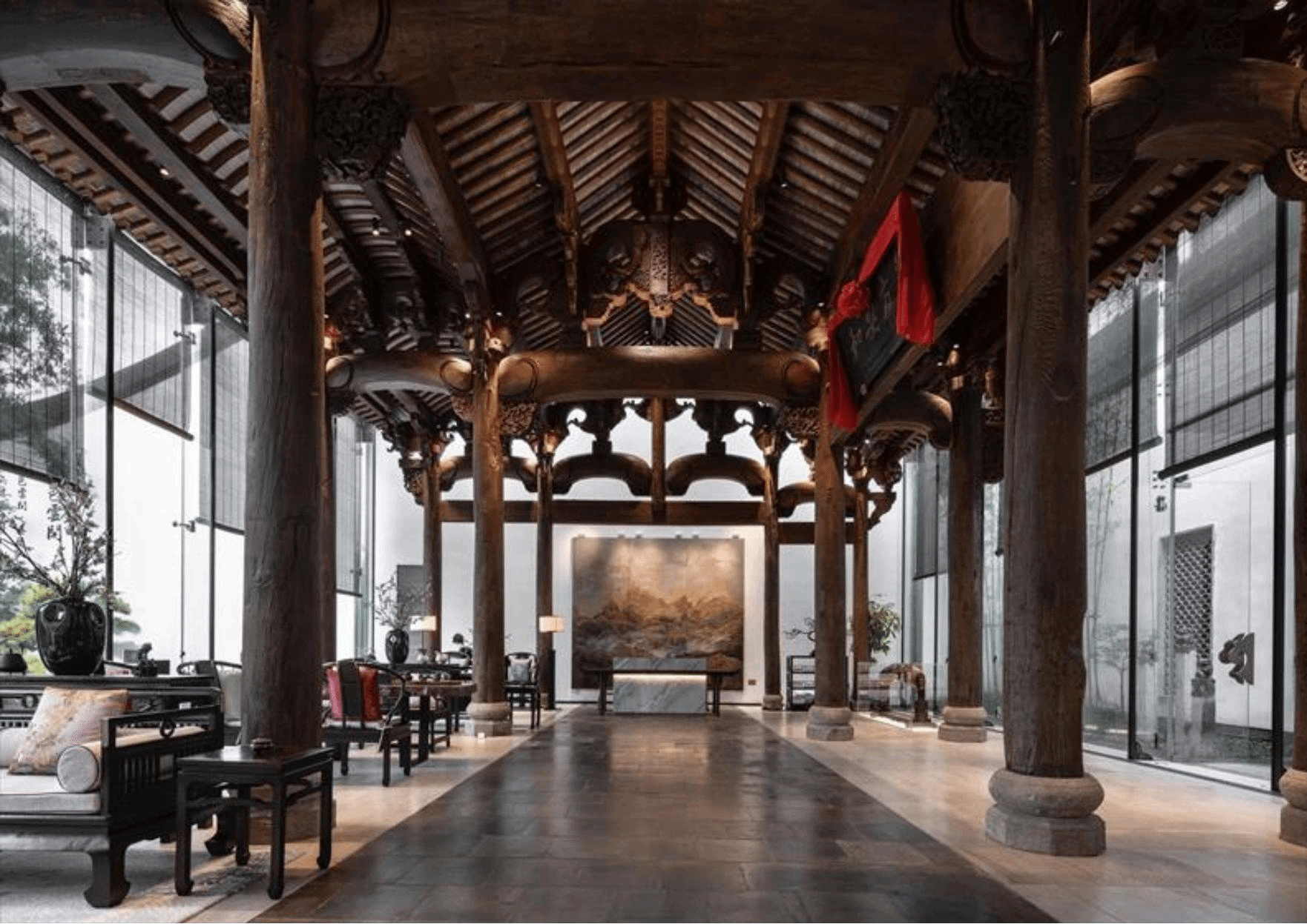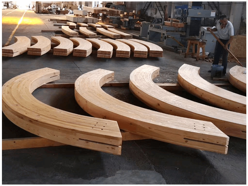 園區(qū)可生產(chǎn)仿古建筑柱梁、膠合木柱、膠合木梁、大跨度膠合彎梁、輕型木結(jié)構(gòu)墻體、輕型木桁架、木結(jié)構(gòu)連接件等7種木結(jié)構(gòu)構(gòu)件產(chǎn)品,以及木雕、磚雕、石雕等配套裝飾類構(gòu)件產(chǎn)品,具有重量輕、施工快、抗震性能好、舒適、美觀等優(yōu)點(diǎn)。