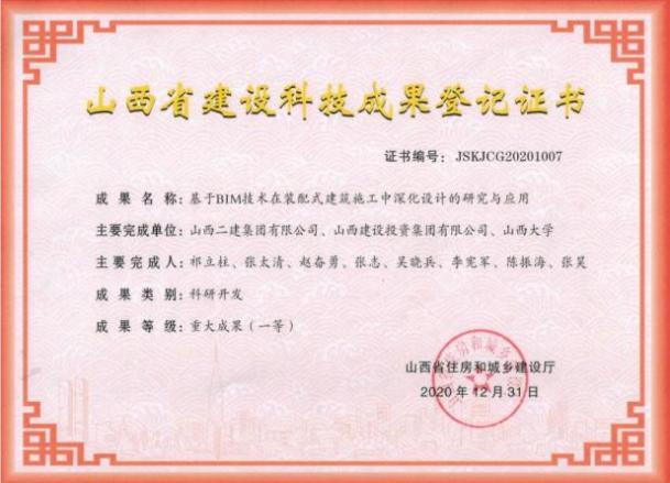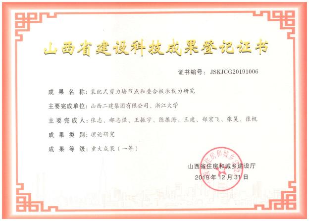 (2)科技成果登記:6項(xiàng)山西省建設(shè)科技成果登記予以登記。
