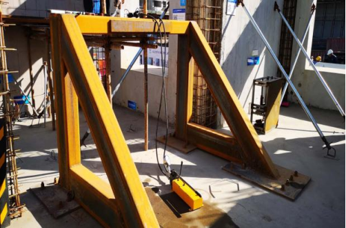 反力架由7根矩形冷彎空心型鋼組成,并對(duì)橫梁受力處進(jìn)行了加強(qiáng),以減少鋼材受力后的撓度及對(duì)實(shí)驗(yàn)的影響。測(cè)試樣板間節(jié)點(diǎn)的抗彎承載力和滯回特性;研究豎向連接節(jié)點(diǎn)的破壞形態(tài);驗(yàn)證節(jié)點(diǎn)真實(shí)承載性能和檢驗(yàn)工程質(zhì)量。