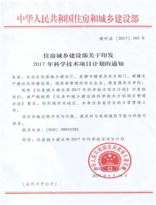 (1)科技項(xiàng)目:立項(xiàng)實(shí)施住建部科學(xué)技術(shù)計(jì)劃項(xiàng)目2項(xiàng);合作實(shí)施住建部科學(xué)技術(shù)計(jì)劃項(xiàng)目1項(xiàng)。